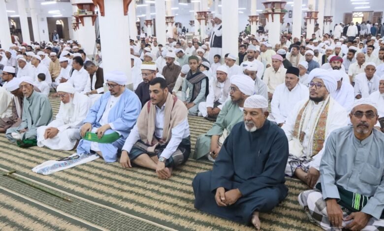 القاضي العامري يؤدي صلاة عيد الفطر مع جموع المصلين بسيئون ويتبادل معهم التهاني