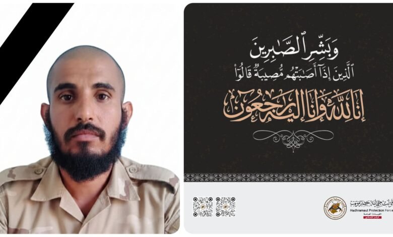 ﴿يَا أَيَّتُهَا النَّفْسُ الْمُطْمَئِنَّةُ ۝ ارْجِعِي إِلَىٰ رَبِّكِ رَاضِيَةً مَرْضِيَّةً ۝ فَادْخُلِي فِي عِبَادِي ۝ وَادْخُلِي جَنَّتِي﴾ببالغ الأسى والحزن، وبقلوبٍ مؤمنةٍ بقضاء الله وقدره، تتقدّم القيادة العامة لقوات حماية حضرموت، ممثَّلةً بالقائد الأعلى الشيخ عمرو بن حبريش العليي، والقائد العام اللواء مبارك أحمد العوبثاني، وكافة منتسبي قوات حماية حضرموت، بأحرّ التعازي وصادق المواساة إلى أسرة وذوي المغفور له بإذن الله تعالى، المساعد أول أحمد عمر باجويد بارشيد (شحتور).سائلين الله عز وجل أن يتغمّد الفقيد بواسع رحمته ومغفرته ورضوانه، وأن يُسكنه فسيح جناته، وأن يُلهم أهله وذويه الصبر والسلوان. إنّه سميعٌ مجيب، وبالاستجابة جدير، وإنا لله وإنا إليه راجعون.`المركز الإعلامي لقوات حماية حضرموت`