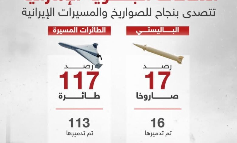 وزارة الدفاع الإماراتية: اعتراض 113 طائرة مسيرة بينما سقطت 4 طائرات