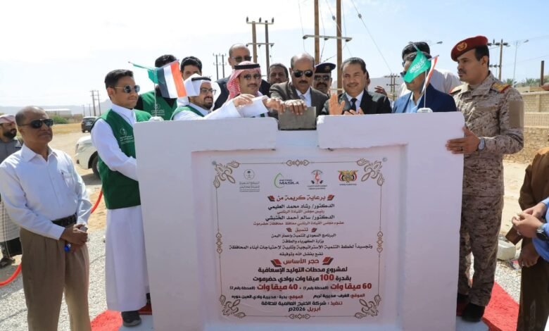 وضع وكيل محافظة حضرموت لشؤون مديريات الوادي والصحراء، جمعان بارباع، حجر الأساس لمشروع إنشاء محطات توليد كهرباء إسعافية بقدرة 100 ميجاوات في وادي حضرموت، في خطوة تمثل دفعة مهمة لتعزيز منظومة الكهرباء وتحسين مستوى الخدمات الأساسية في المنطقة.ويأتي المشروع برعاية وتنسيق البرنامج السعودي لتنمية وإعمار اليمن، وبإشراف وزارة الكهرباء والطاقة اليمنية، ضمن جهود دعم قطاع الطاقة في اليمن ومعالجة العجز القائم في التوليد، خصوصًا في مديريات الوادي والصحراء التي تشهد تزايدًا مستمرًا في الطلب على الكهرباء.ومن المتوقع أن يسهم المشروع في الحد من الانقطاعات المتكررة، ورفع كفاءة التوليد، بما ينعكس إيجابًا على حياة المواطنين، ويدعم استمرارية الخدمات الحيوية كالصحة والمياه، إضافة إلى تحفيز النشاط الاقتصادي والتنمية المحلية في وادي حضرموت.ويُعد هذا المشروع جزءًا من تدخلات أوسع تستهدف تحسين البنية التحتية ورفع مستوى الاستقرار الخدمي، في ظل التحديات التي تواجه قطاع الكهرباء على مستوى البلاد