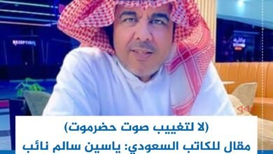 مقال للكاتب السعودي ياسين سالم لا لتهميش أبناء حضرموت (لا لتغييب صوت حضرموت)