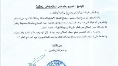 عضو مجلس القيادة محافظ حضرموت يصدر تعميما صارما بمنع حمل السلاح لتعزيز الأمن والاستقرارالمكلا