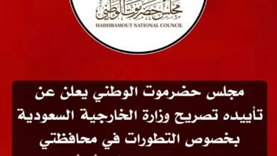 مجلس حضرموت الوطني يعلن عن تأييده تصريح وزارة الخارجية السعودية بخصوص التطورات في محافظتي حضرموت والمهرة